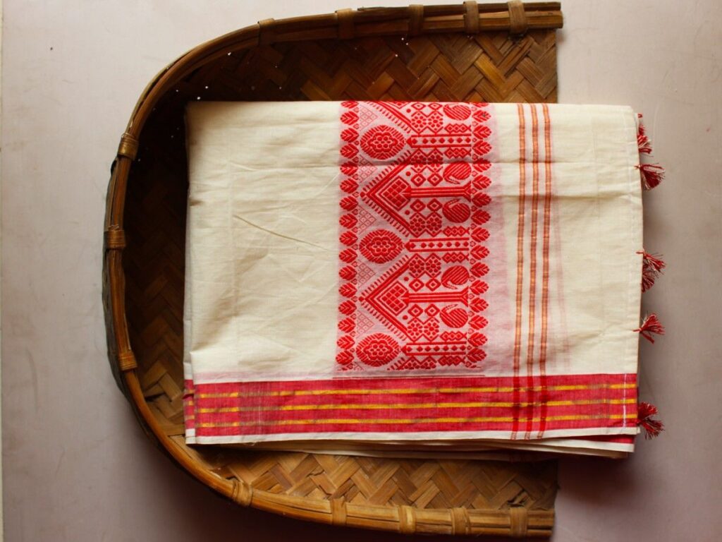 Gamosa – Symbol of Assamese Identity used in rituals, Bihu, and greetings.